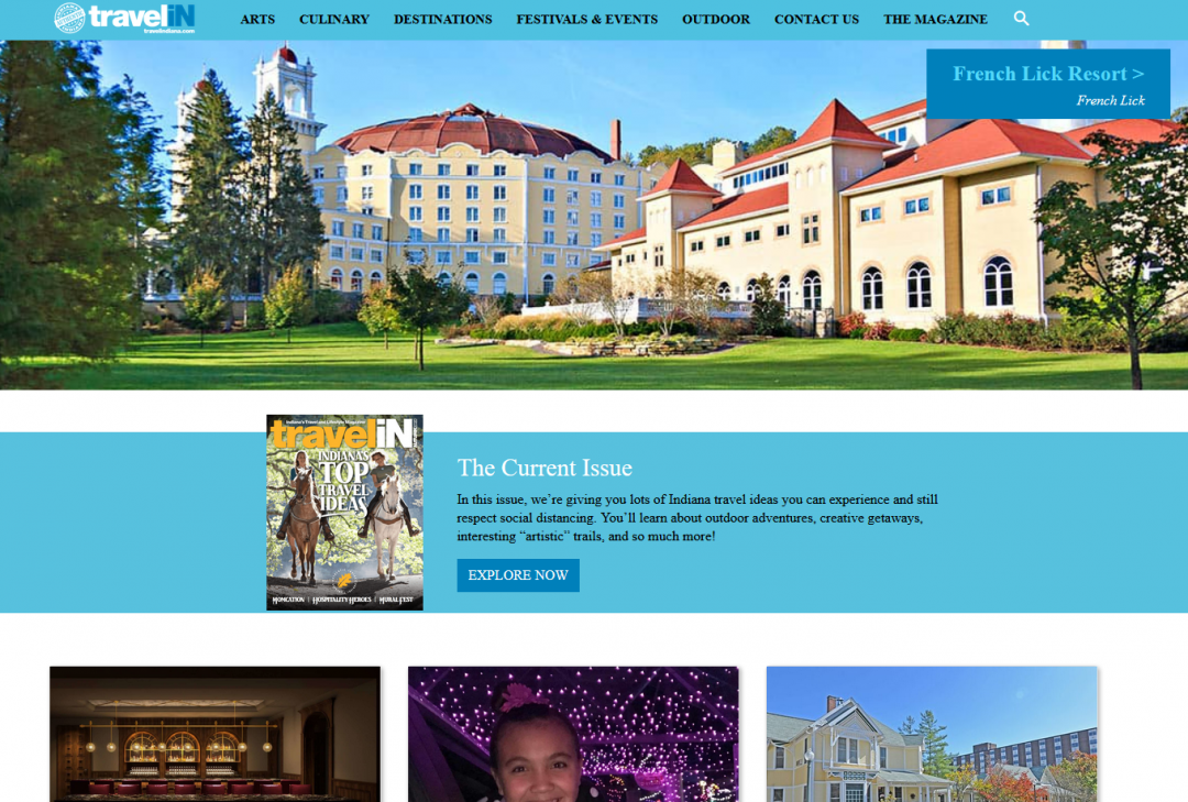 When Travel Indiana Approached me the site looked like this first image. At the widescreen desktop size everything looked way it does in the screenshot.